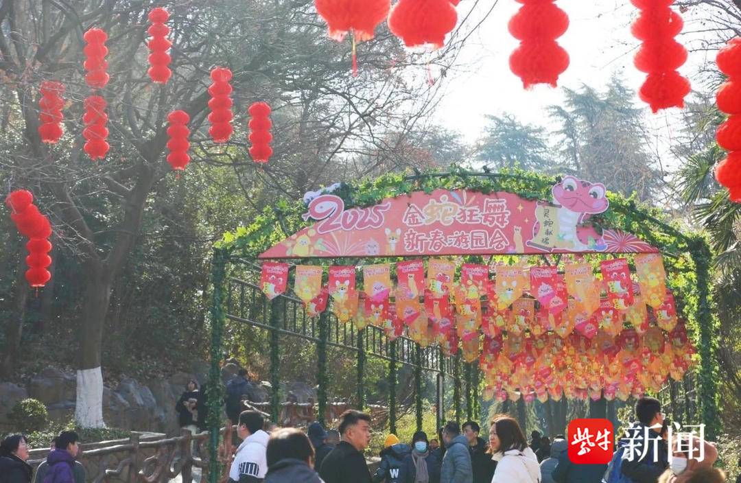 动物园内吵杂的蛇年春节氛围