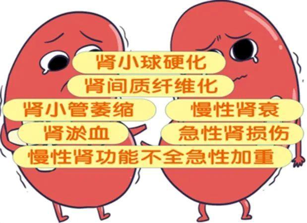 可导致急性肾毁伤、肾淤血、慢性肾衰、肾小球硬化等病症。