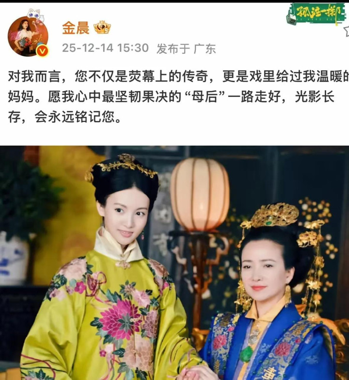 演员金晨在外交平台发文追悼何晴,光影长存,恒久留住荧幕上的好意思好。