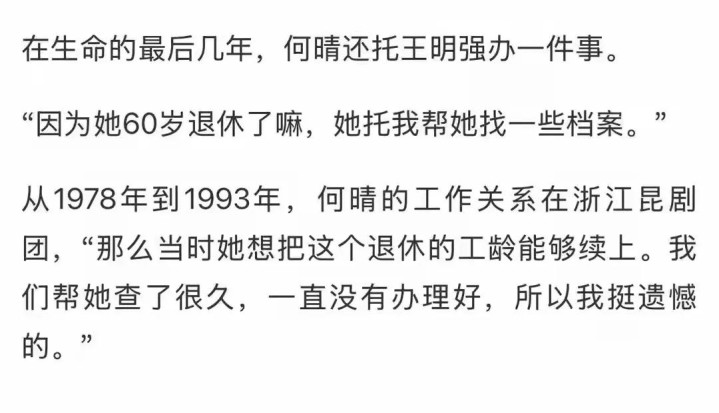 王明强泄漏,从1978年到1993年,何晴的干系在浙江昆剧团,她思把这个退休的工龄巧合续上。