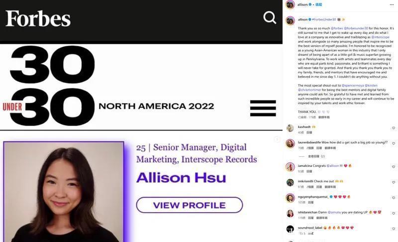 还如故入选2022年福布斯30岁以下精英榜单第25名。