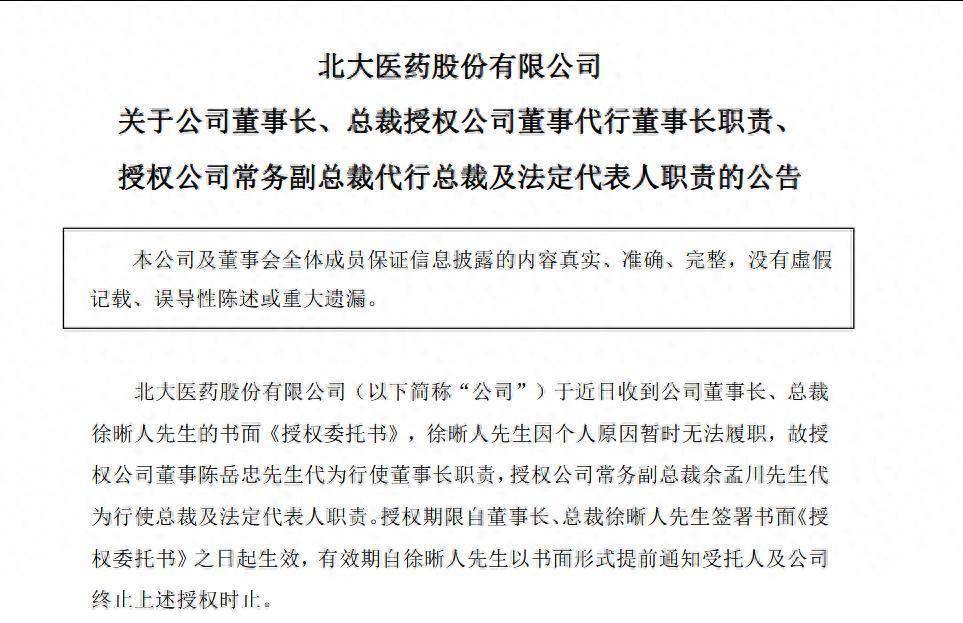 10月25日买球·(中国)投注APP官方网站,北大医药发布对于公司董事长、总裁授权公司董事代行董事长责任、授权公司常务副总裁代行总裁及法定代表东谈主责任的公告。